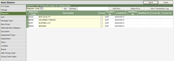 These are mainly the reasons of rejecting an item. The Rejection codes are required by the system at the time of receiving an item which has been marked as inspection required. Such items if rejected after inspection at the time of receiving, the system prompts for a rejection code.
